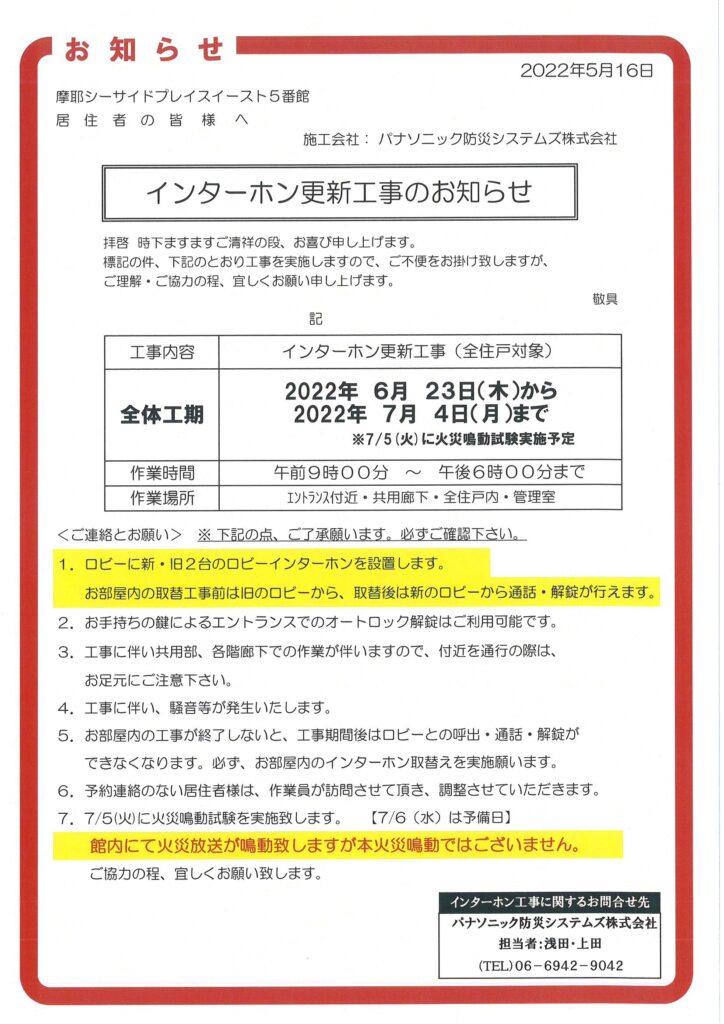 [5番館]インターホン工事