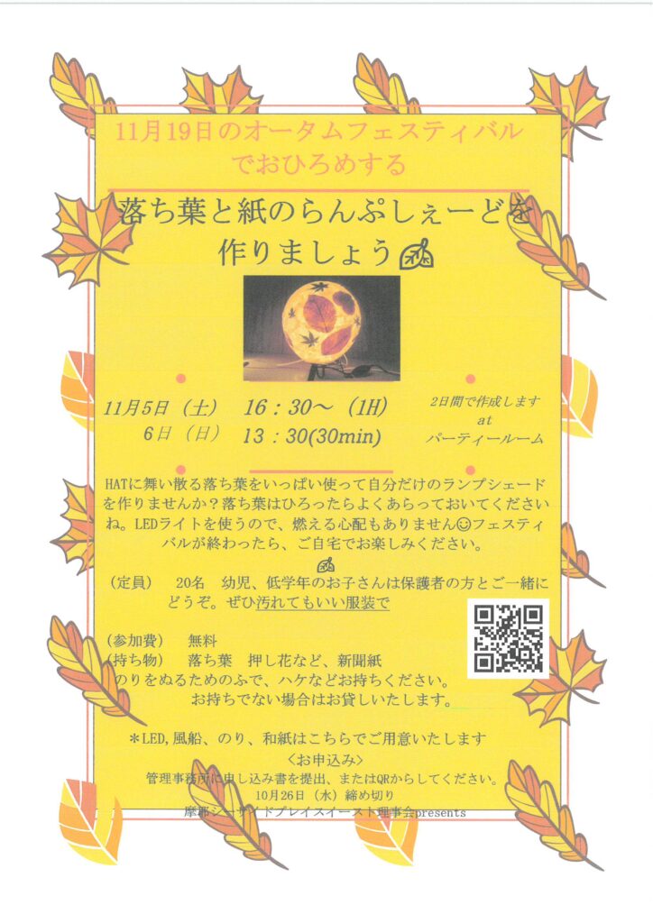 11月19日オータムフェスティバル「落ち葉と紙のらんぷしぇーどを作りましょう」