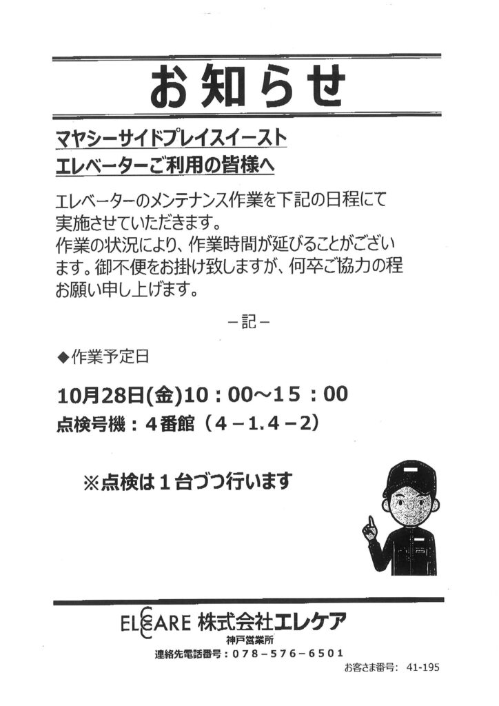 4番館エレベーター点検お知らせ
