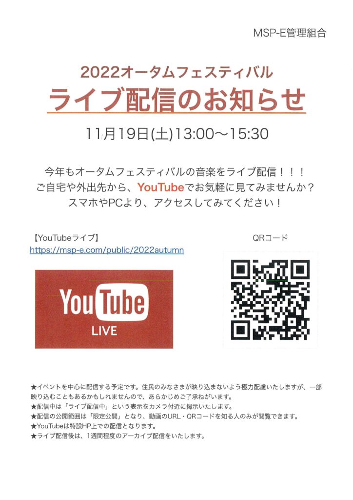 11/19(土)オータムフェスティバル・ライブ配信のお知らせ