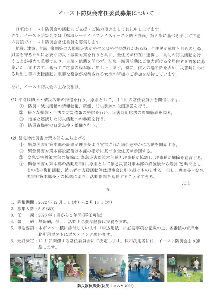 イースト防災会常任委員募集