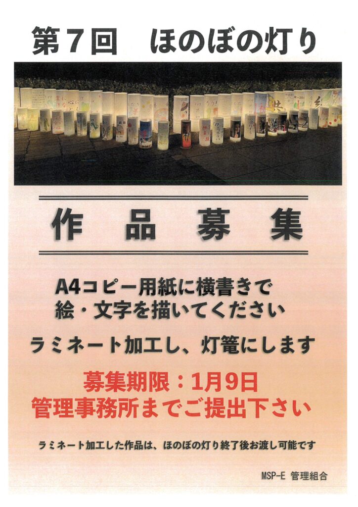 住民ページ > お知らせ掲示板 > 住民-お知らせ > 第7回ほのぼの灯り 作品募集