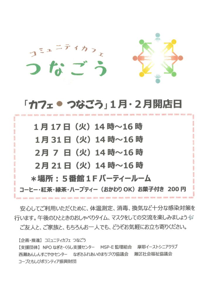 「カフェ・つなごう」1月・2月開店日