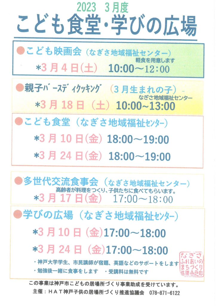 3月度こども食堂・学びの広場(なぎさ地域福祉センター)