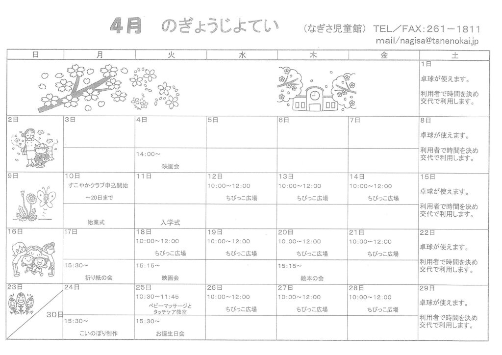 なぎさ児童館4月の行事予定