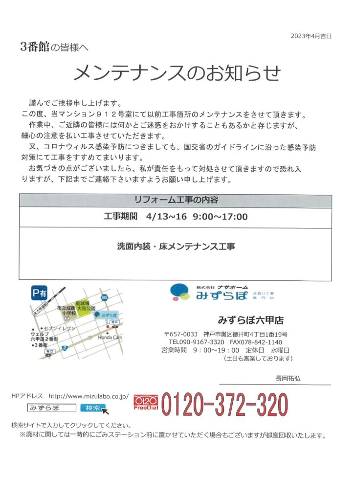 [3番館]リフォーム工事のお知らせ
