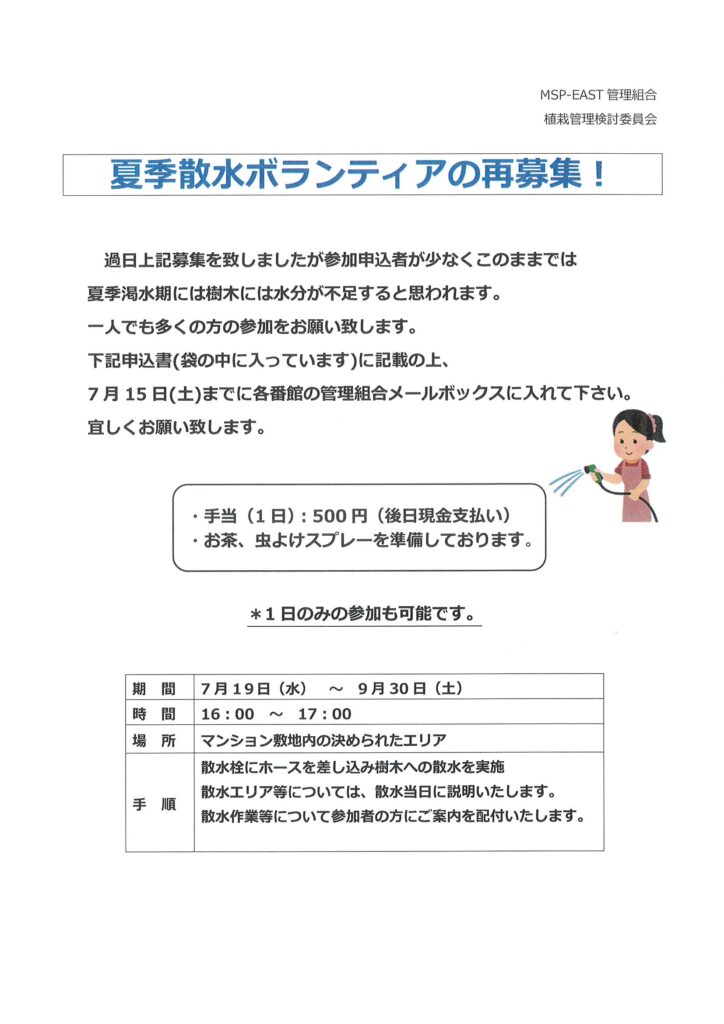 夏季散水ボランティアの再募集