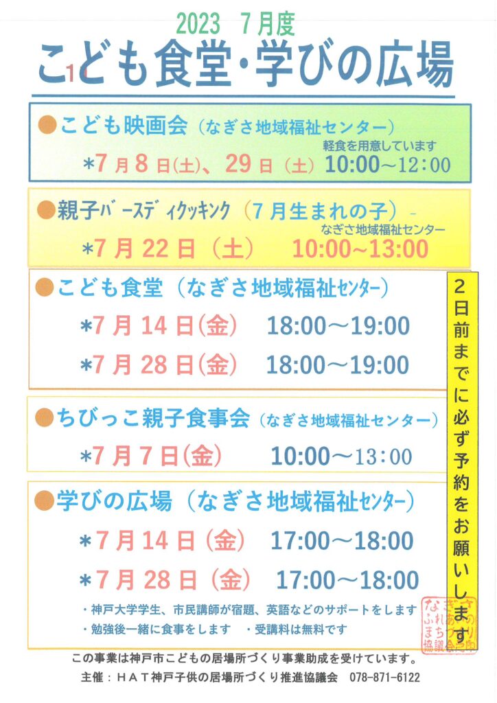 7月度こども食堂・学びの広場(なぎさ地域福祉センター)