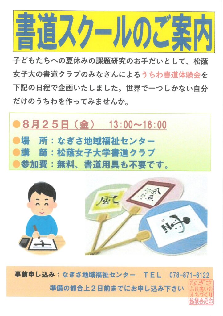 8月25日「書道スクールのご案内」