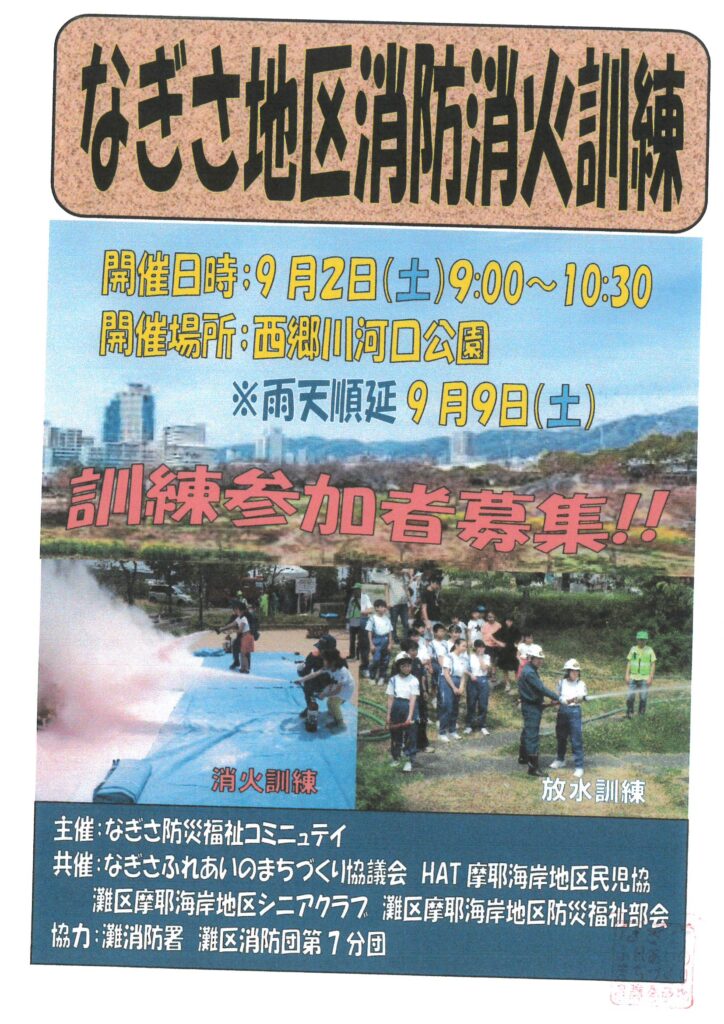 なぎさ地区消防消火訓練のお知らせ