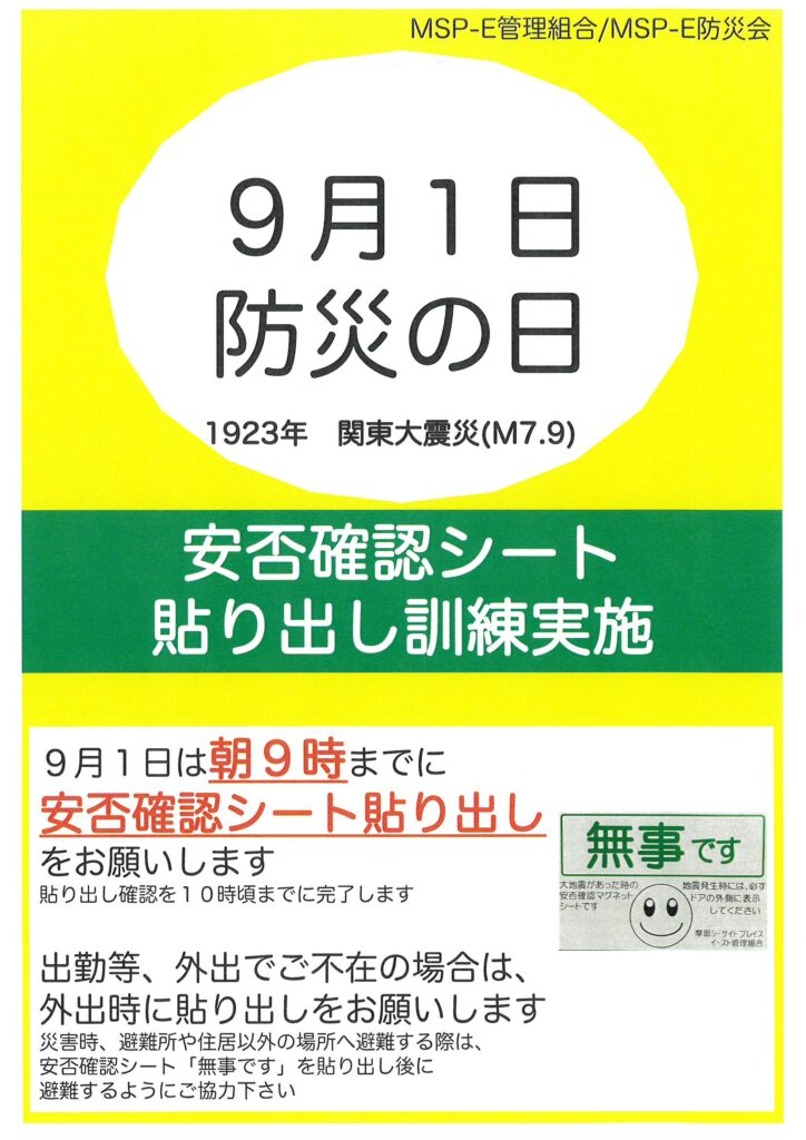 9月1日防災の日 安否確認シート貼り出し訓練実施