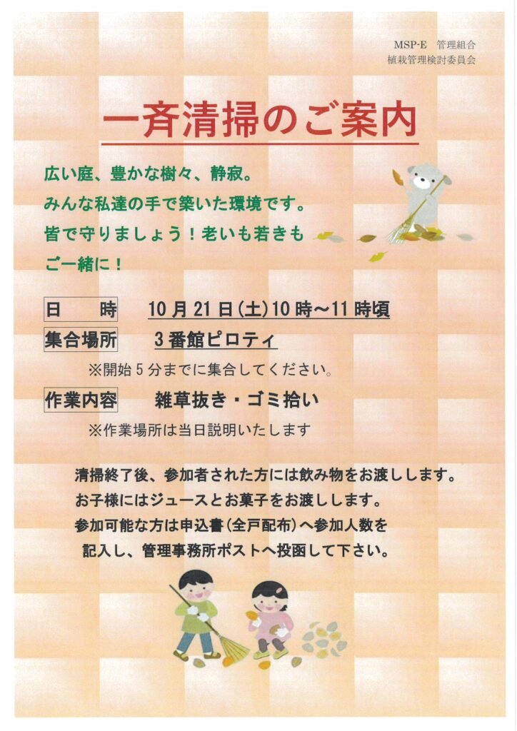10月21日 一斉清掃のご案内