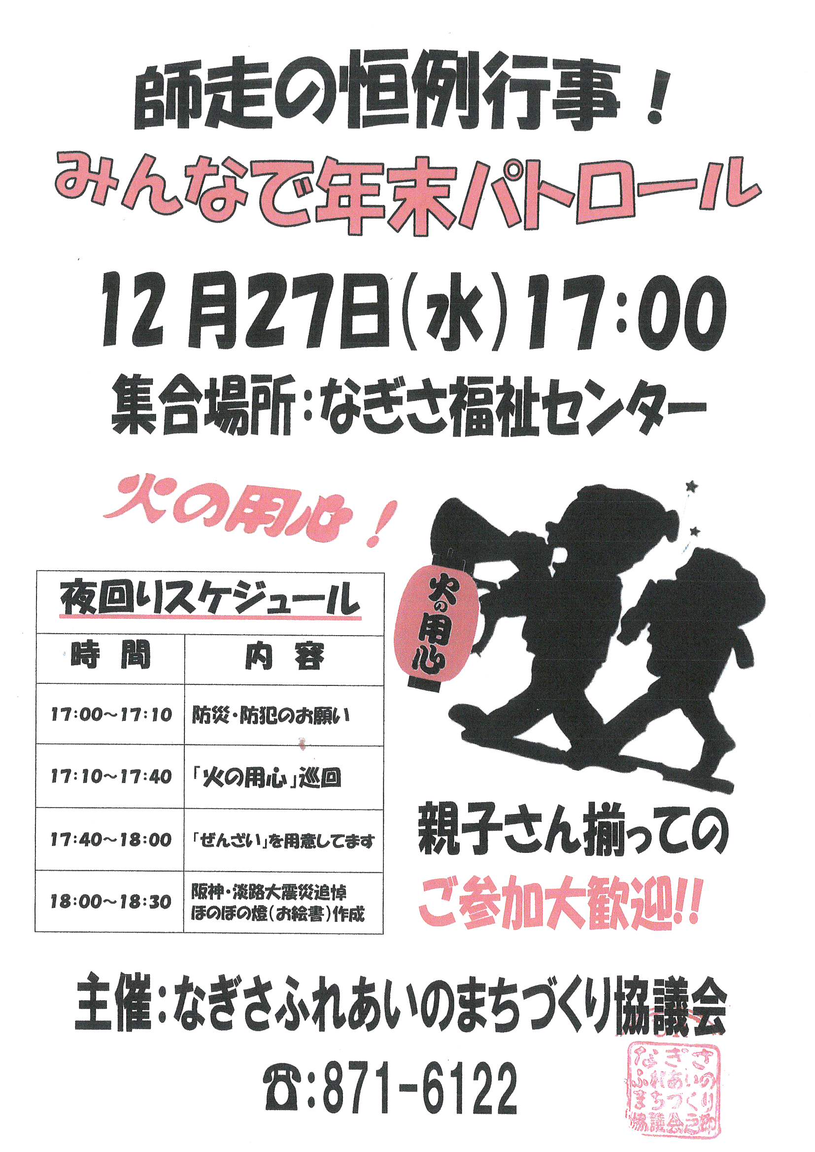 住民ページ > お知らせ掲示板 > 公開-お知らせ > 12/27(水)みんなで年末パトロール