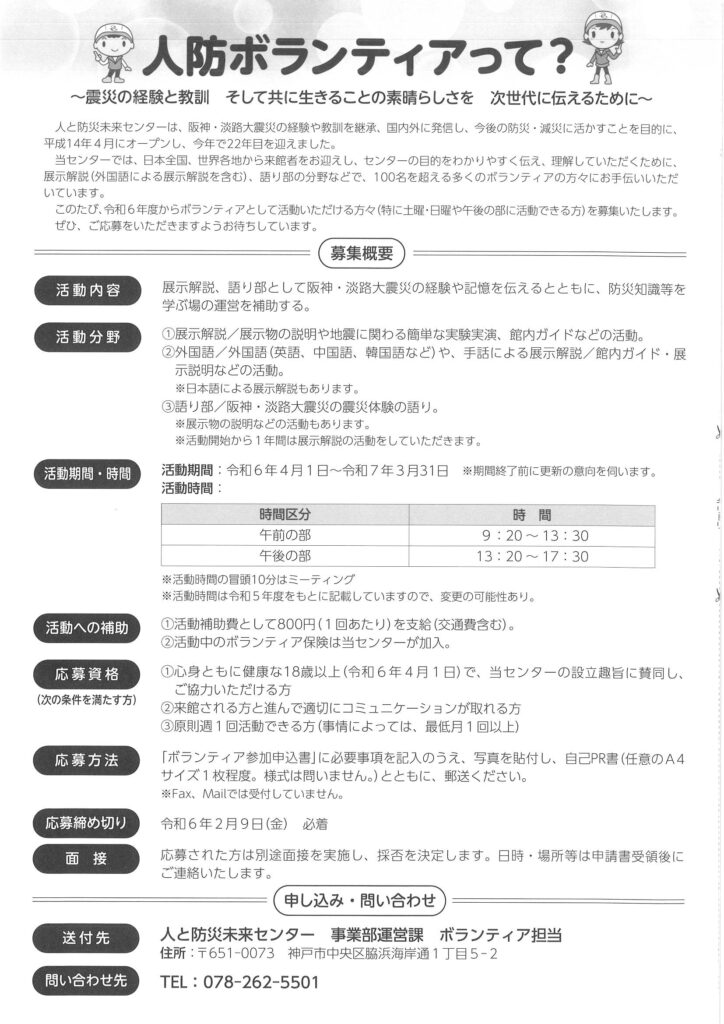 人防ボランティア募集!!