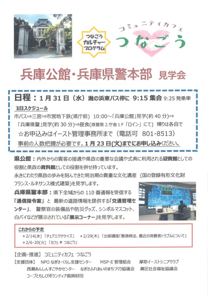 住民ページ > お知らせ掲示板 > 公開-お知らせ > 1/31(水)兵庫公館・兵庫県警本部見学会