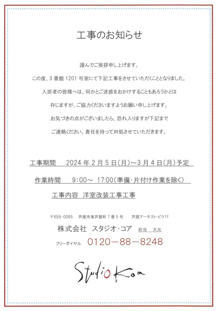 [3番館]リフォーム工事のお知らせ