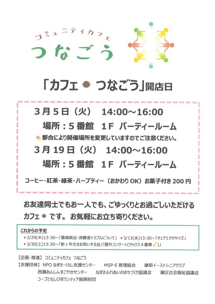 3/5・3/19「カフェ☕つなごう」開店日