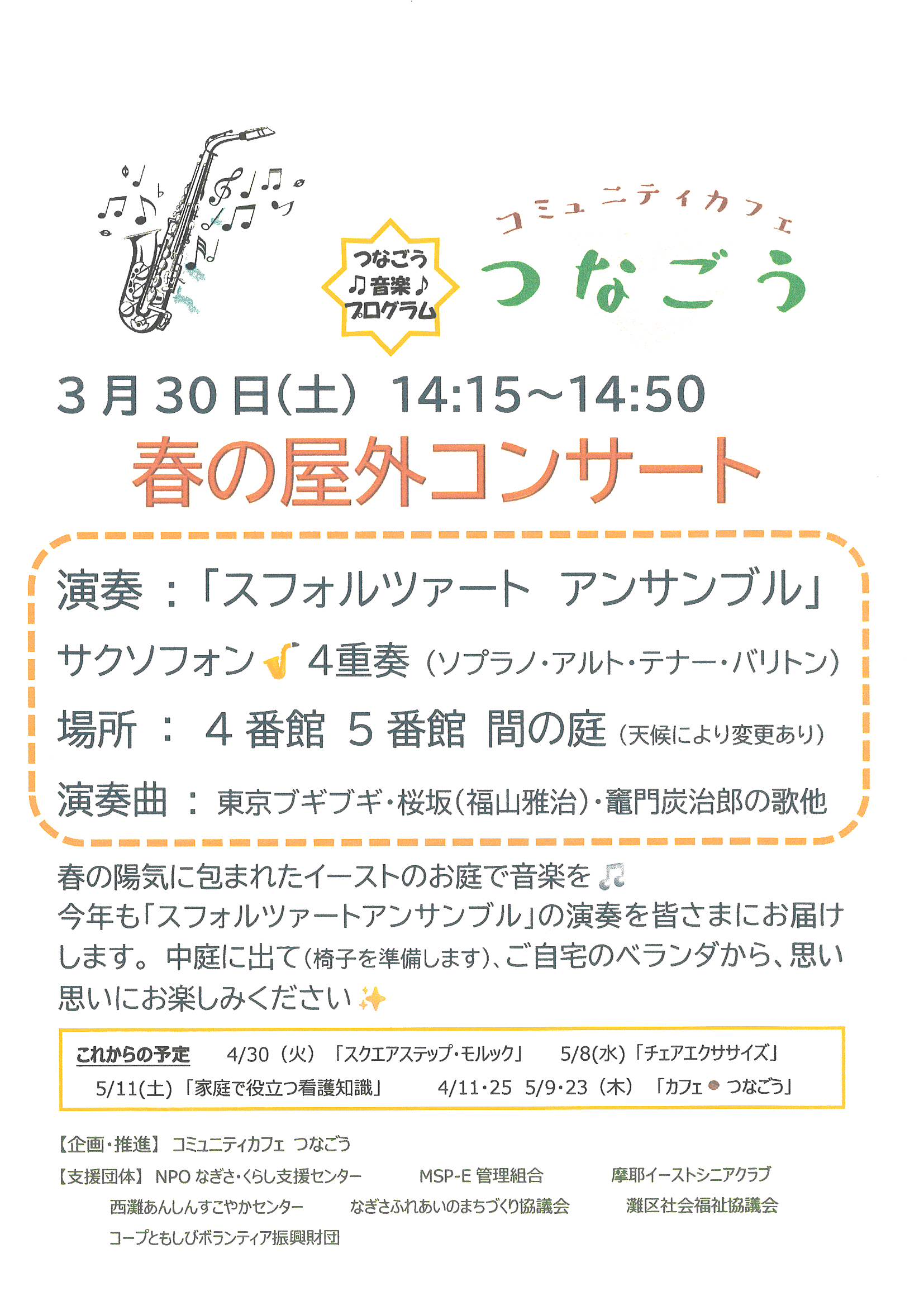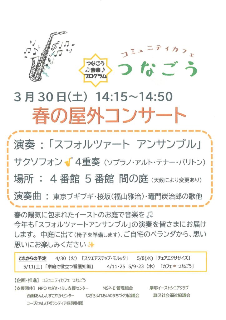 住民ページ > お知らせ掲示板 > 公開-お知らせ > 3月30日(土)春の屋外コンサート