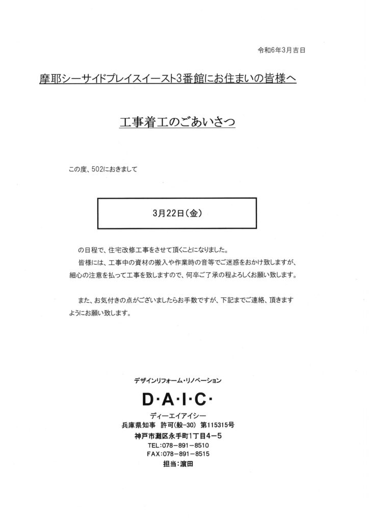 [3番館]リフォーム工事のお知らせ