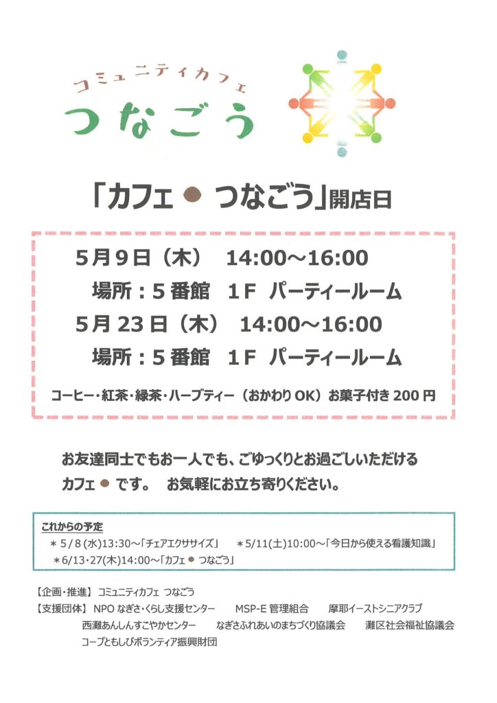 5月9日・23日(木)「カフェつなごう」開店日