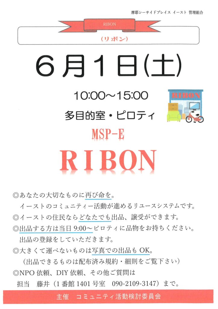 6月1日(土)10:00~RIBON