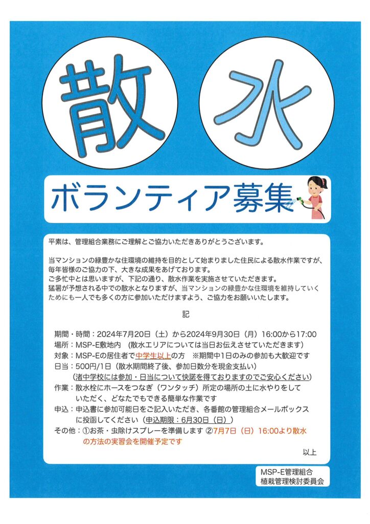 散水ボランテイア募集
