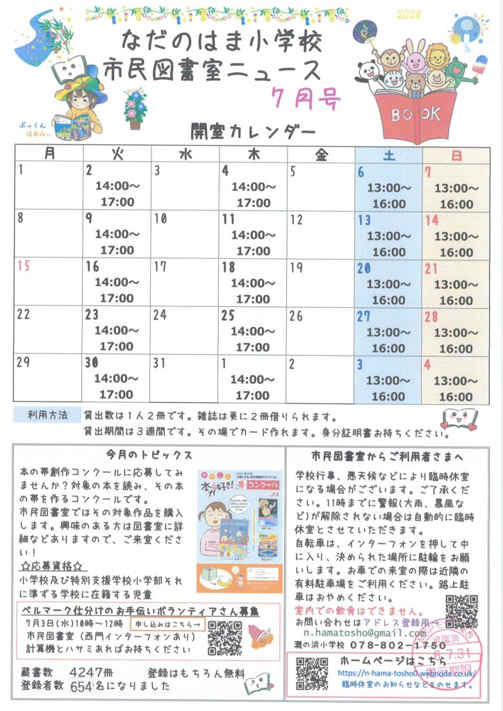 なだのはま小学校市民図書室ニュース7月号