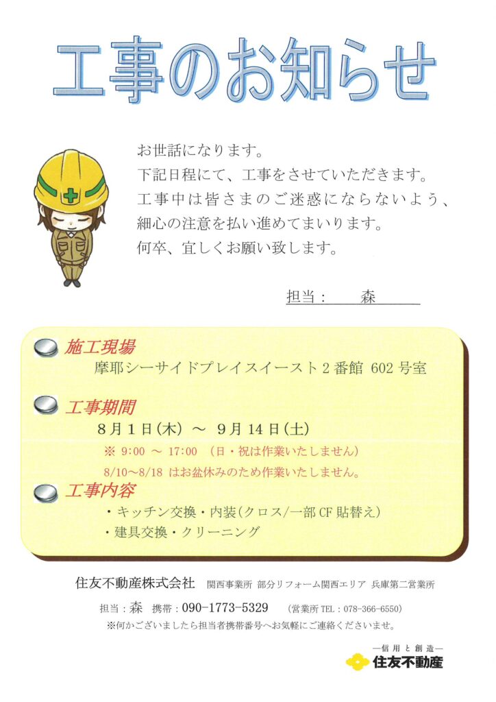 住民ページ > お知らせ掲示板 > 住民-お知らせ > [2番館]リフォーム工事のお知らせ