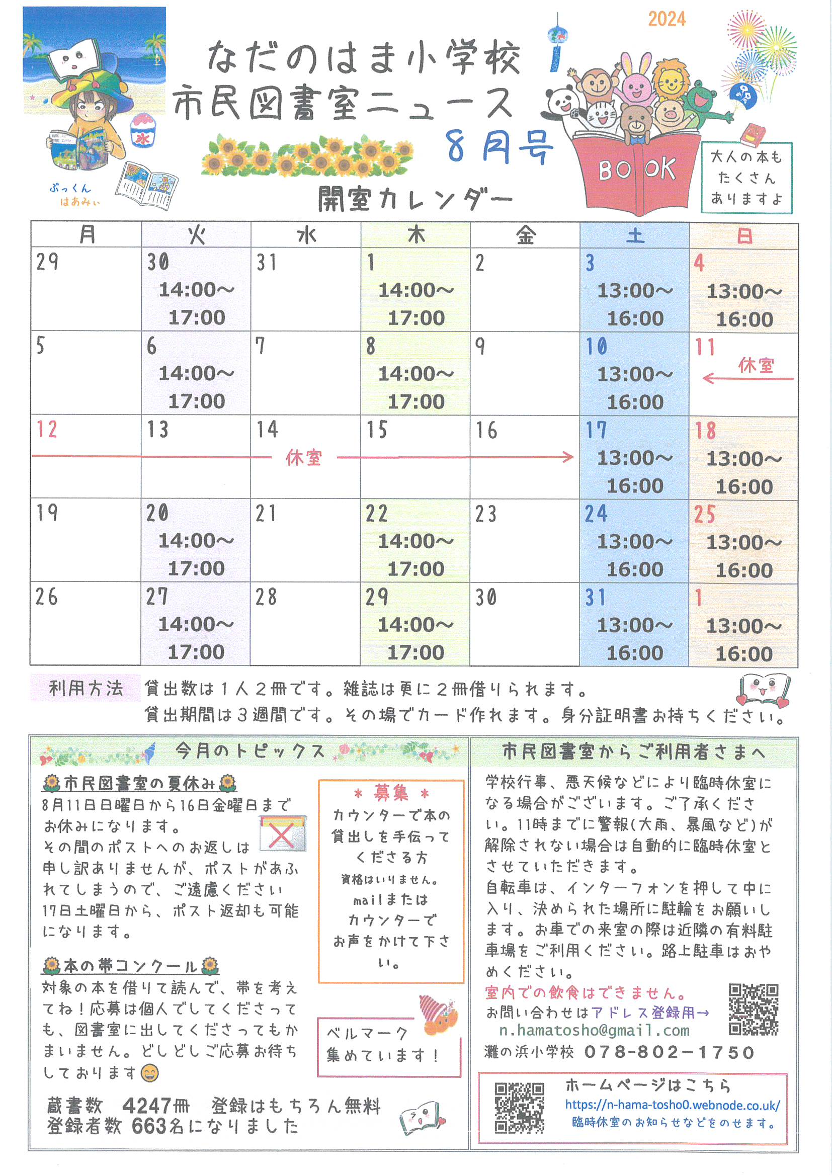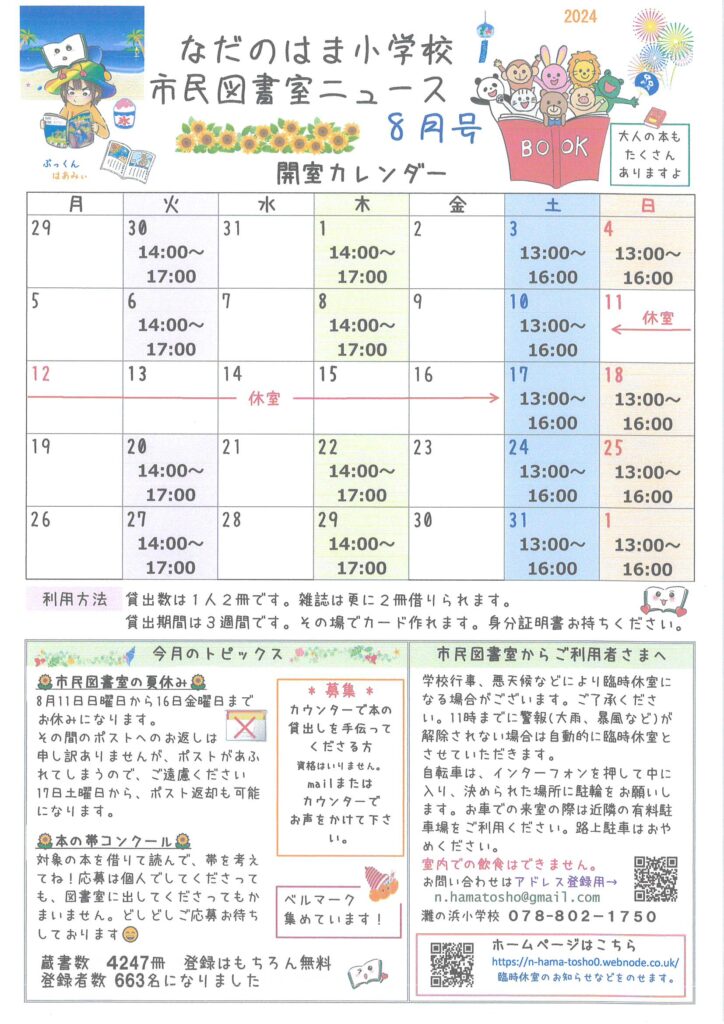 なだのはま小学校市民図書室ニュース8月号