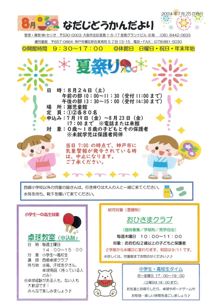 8月 なだじどうかんだより