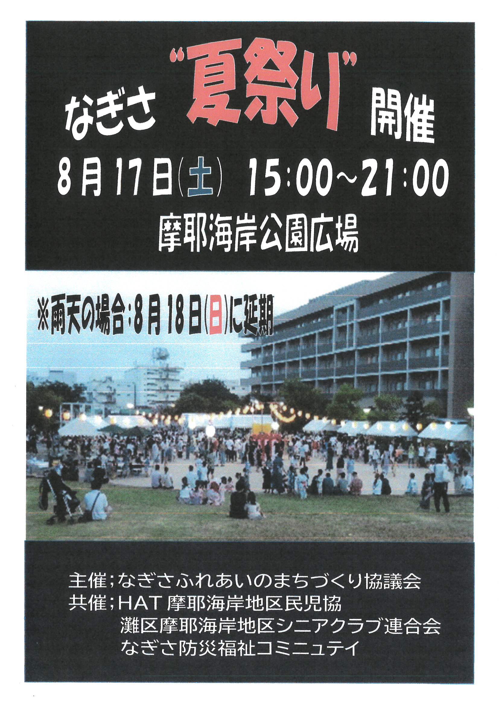 住民ページ > お知らせ掲示板 > 公開-お知らせ > 8月17日(土)なぎさ夏祭り開催