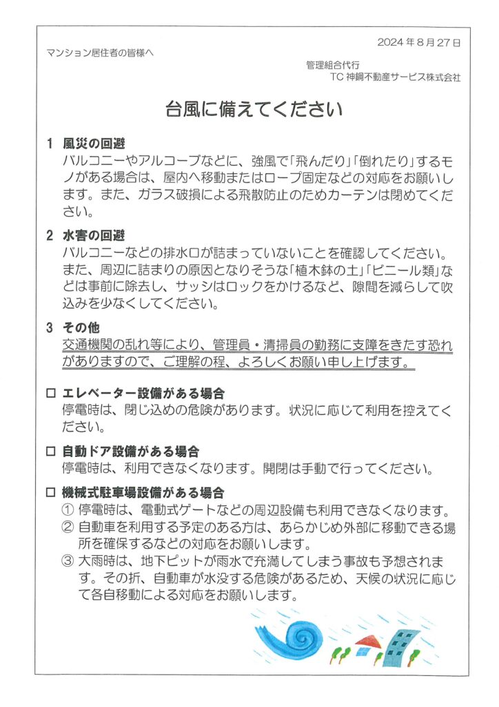 住民ページ > お知らせ掲示板 > 住民-お知らせ > 台風に備えてください