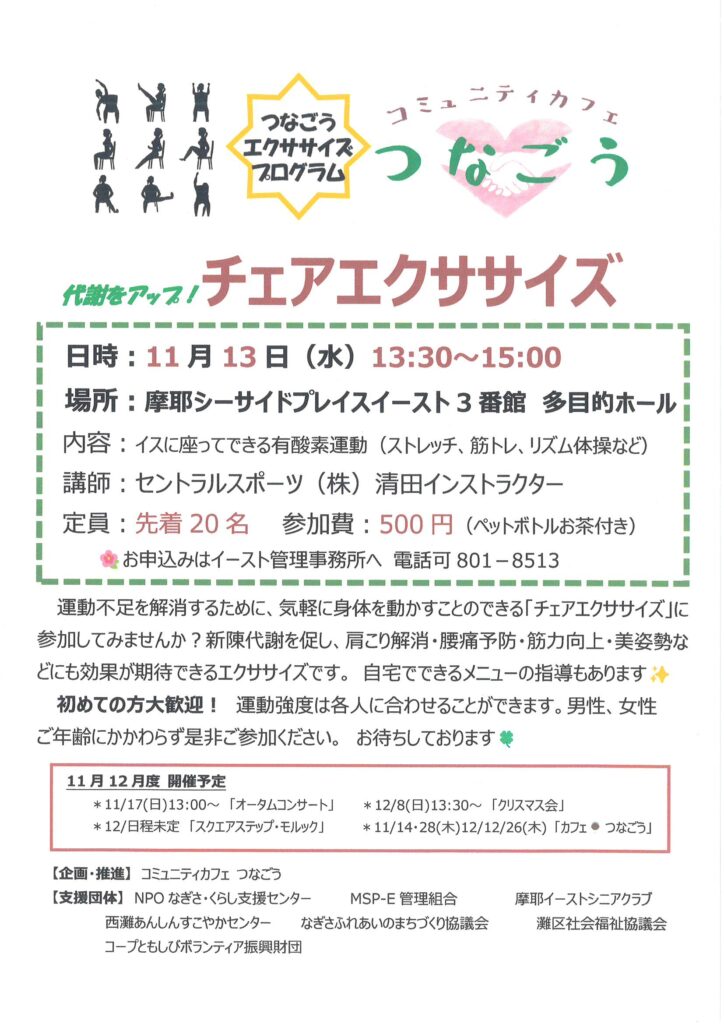 住民ページ > お知らせ掲示板 > 住民-お知らせ > 11月13日(水)チェアエクササイズ