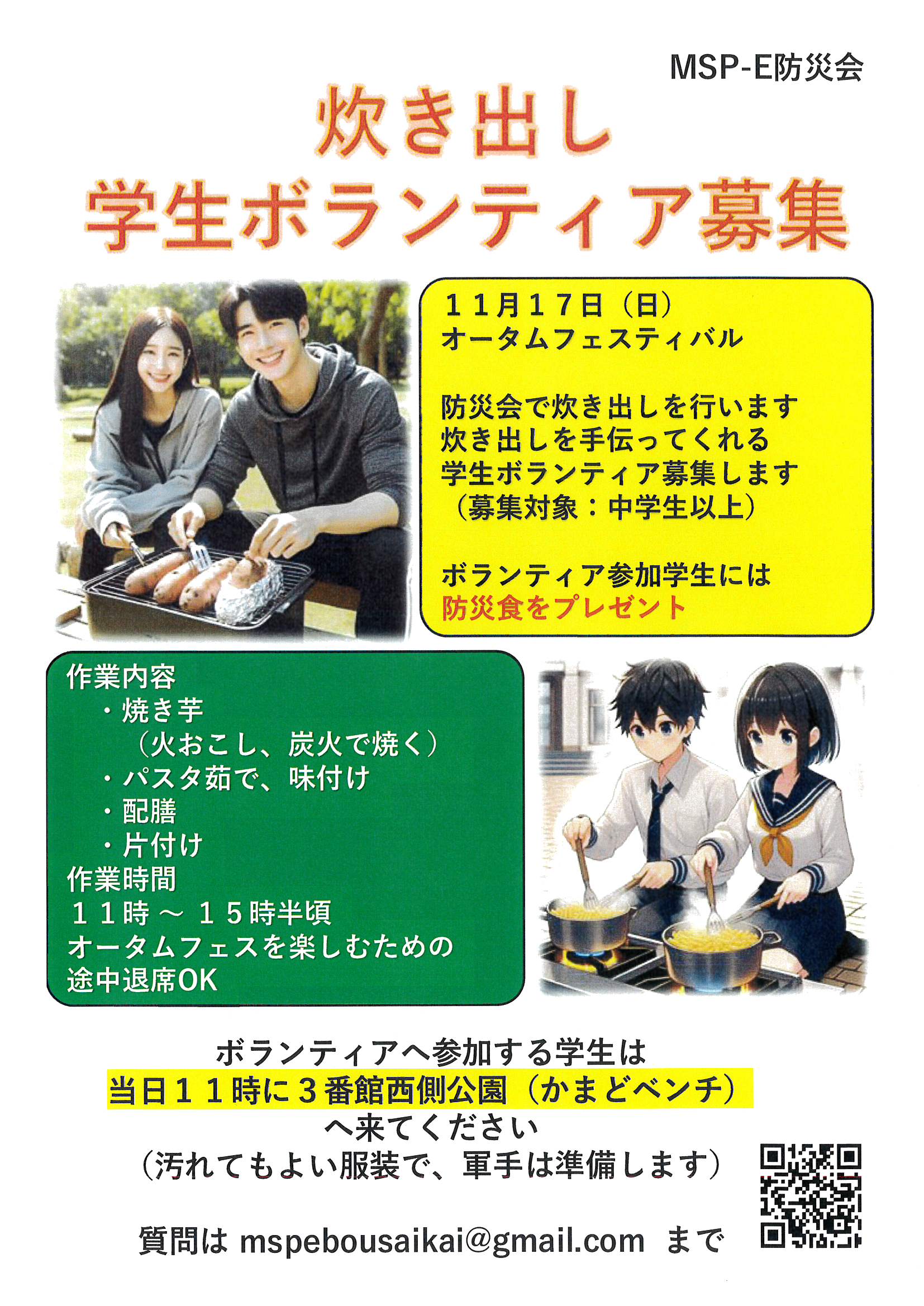 11月17日オータムフェスティバル 炊き出し学生ボランティア募集