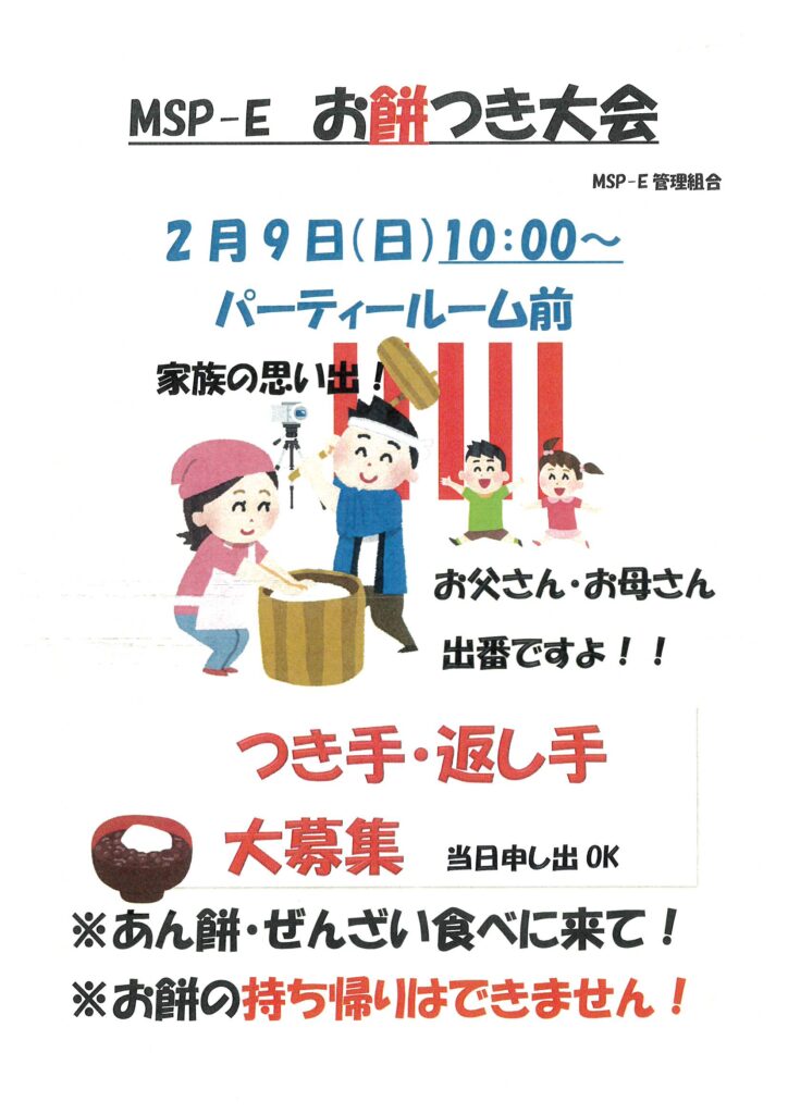 2月9日(日)10:00~お餅つき大会 つき手・返し手大募集