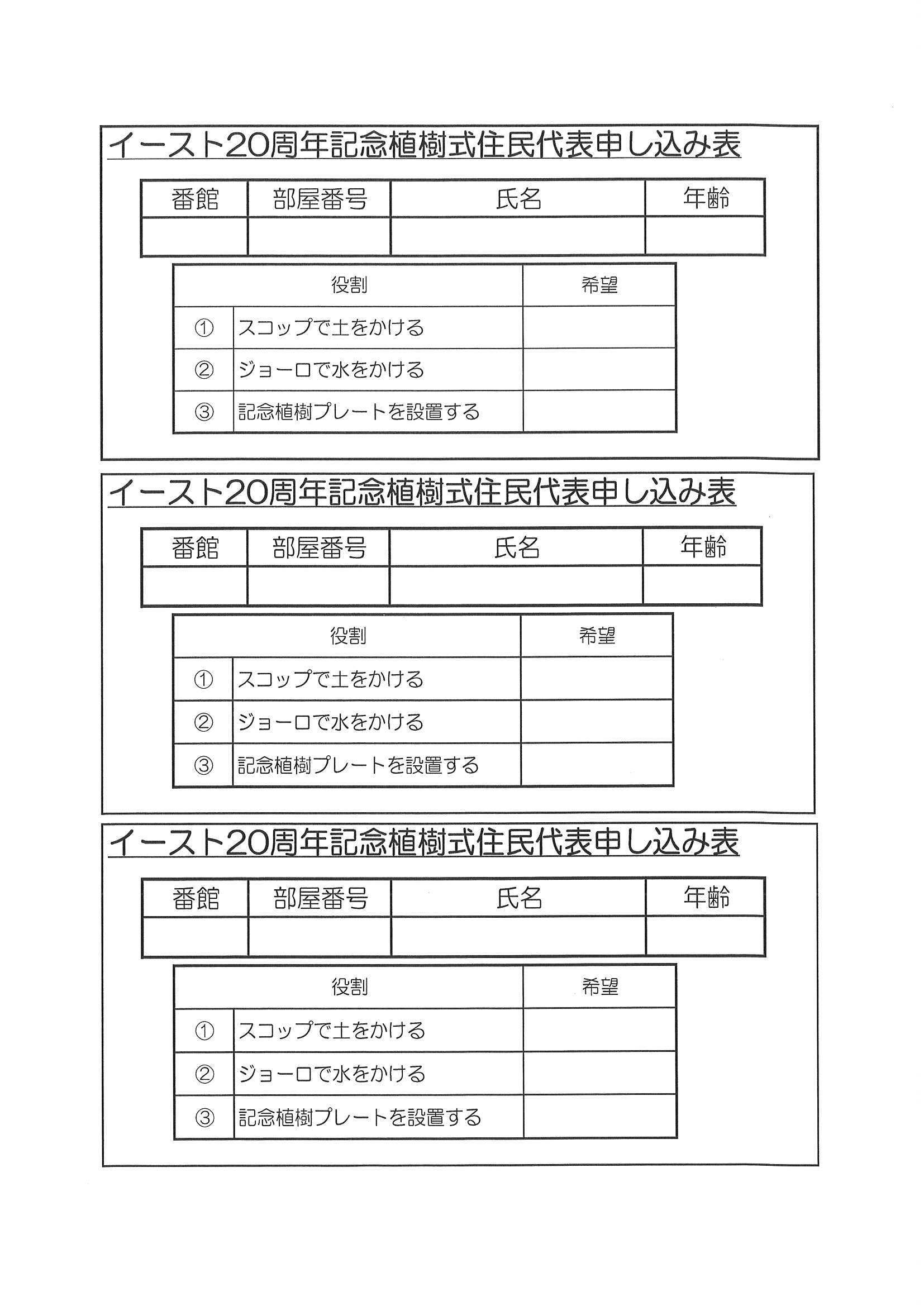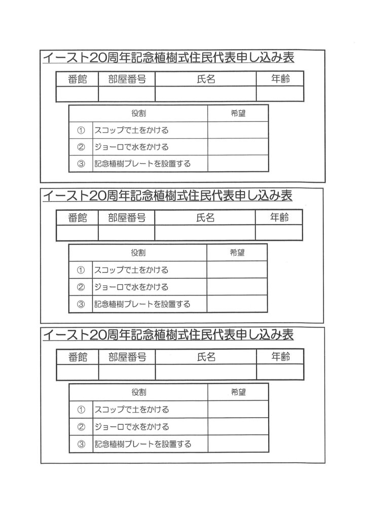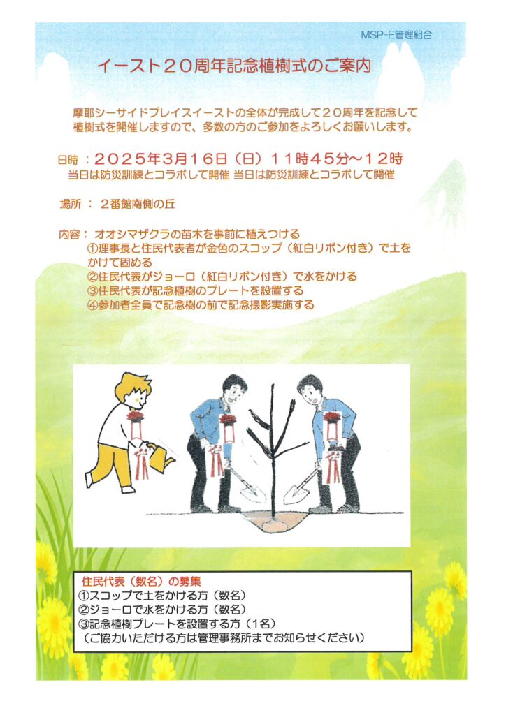 3月16日(日)イースト20周年記念植樹式のご案内