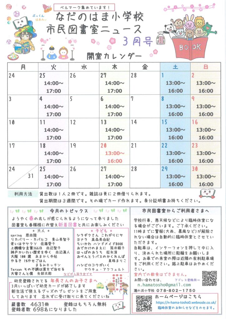 3月号・なだのはま小学校/市民図書室ニュース