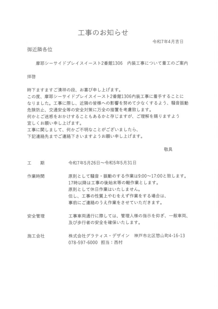 [2番館]リフォーム工事のお知らせ