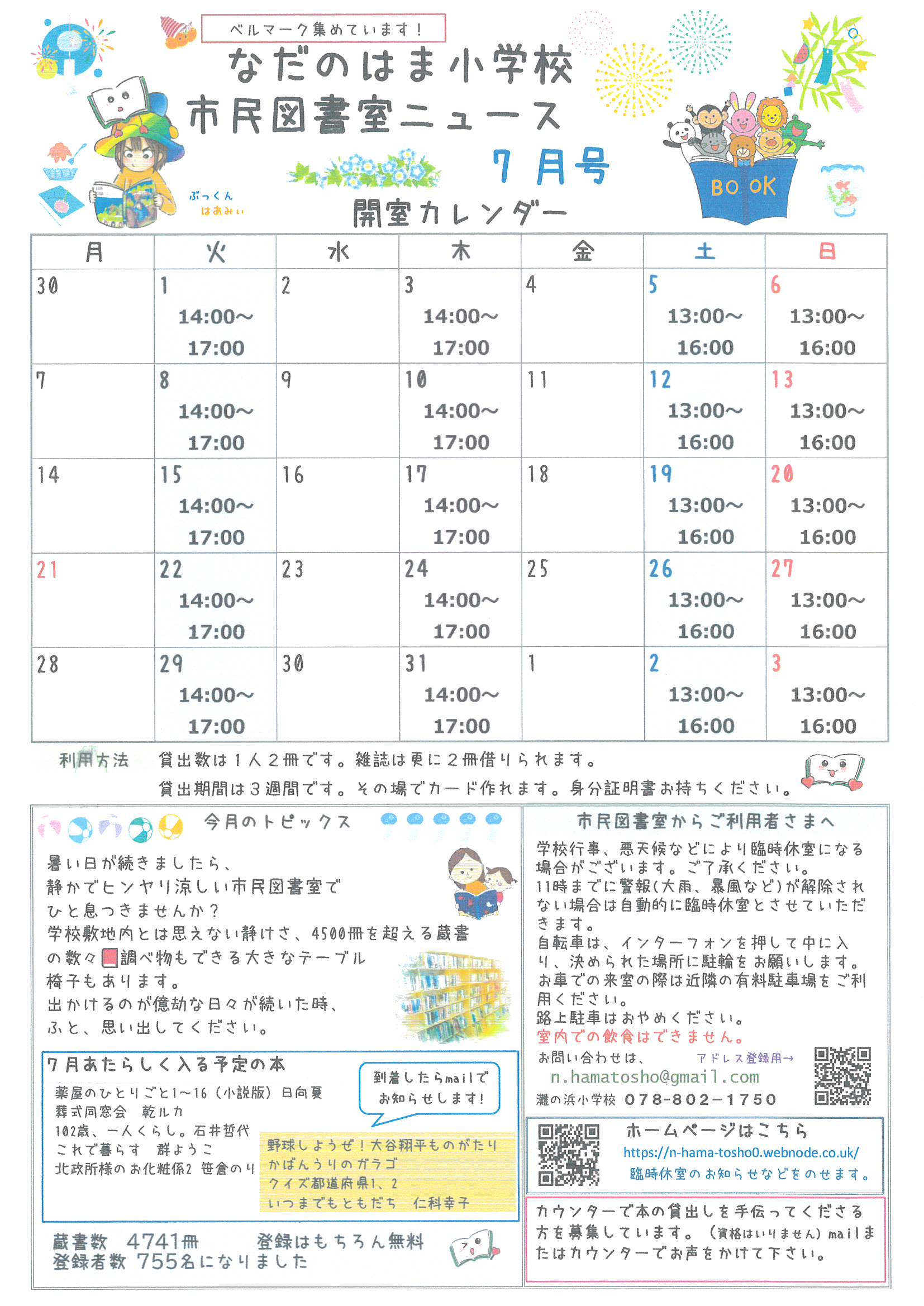 なだのはま小学校市民図書室ニュース7月号