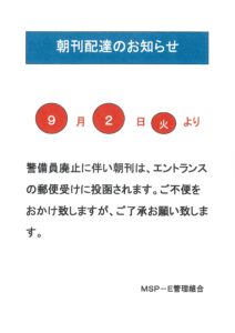 朝刊配達のお知らせ