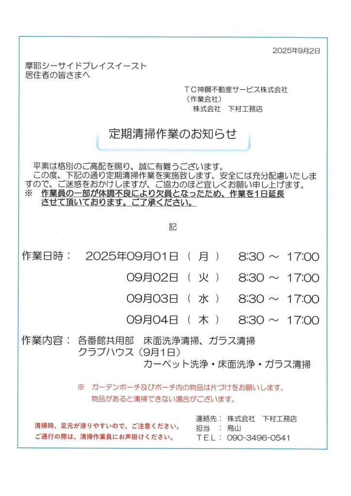 定期清掃作業のお知らせ