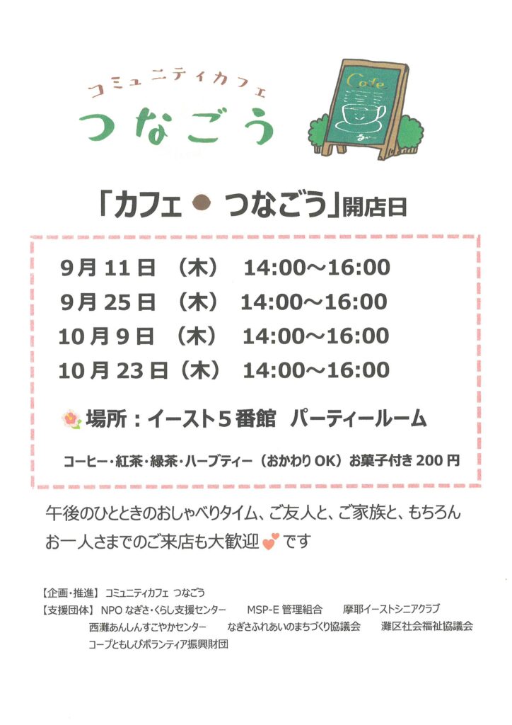 住民ページ > お知らせ掲示板 > 住民-お知らせ > 「カフェつなごう」開店日