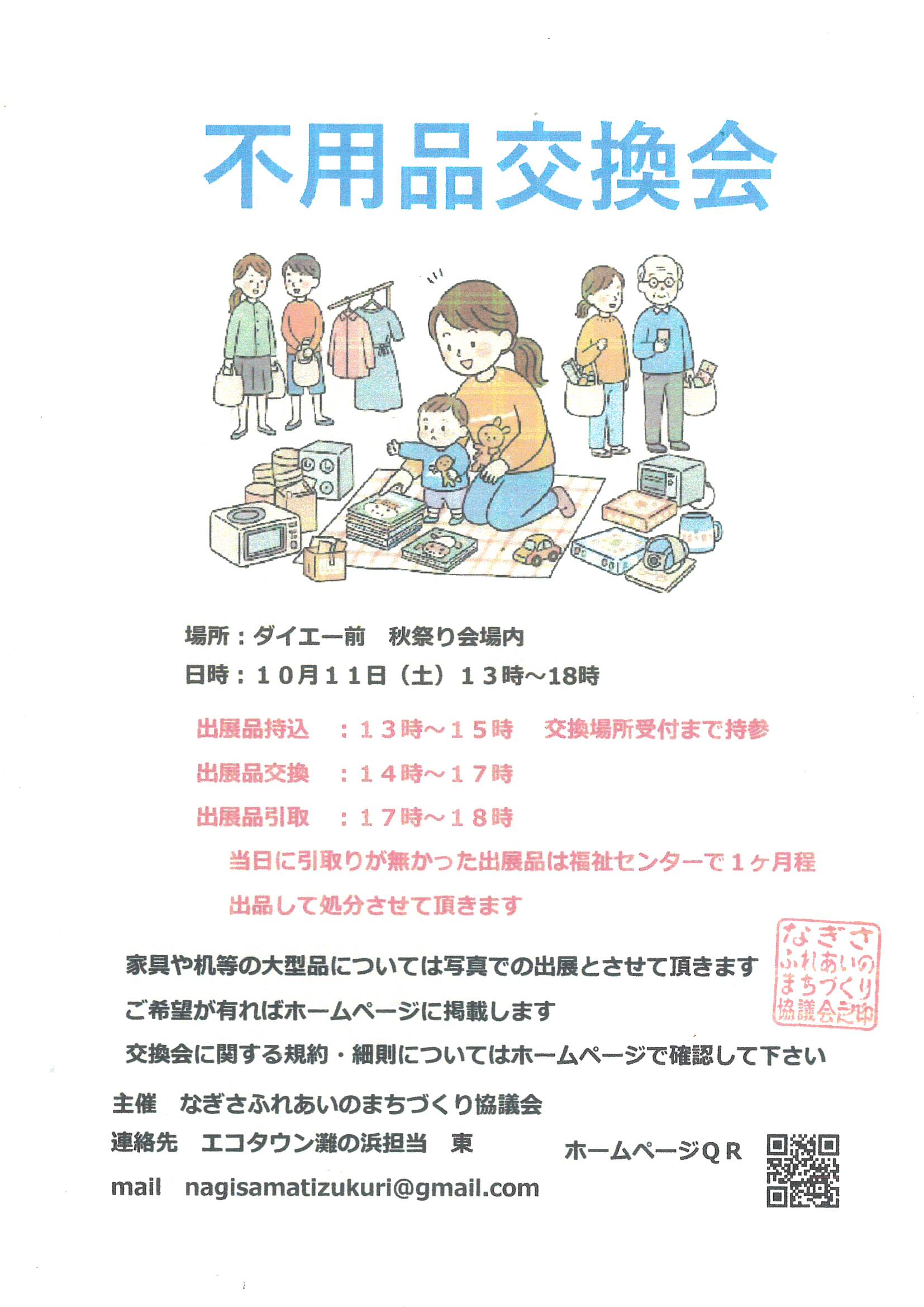 10月11日(土)不用品交換会/ダイエー前 秋祭り会場内