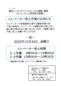 [2番館]エレベーター停止作業のお知らせ