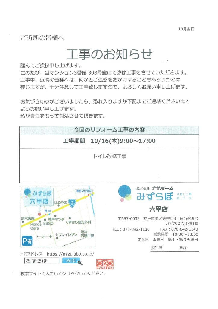 [3番館]リフォーム工事のお知らせ