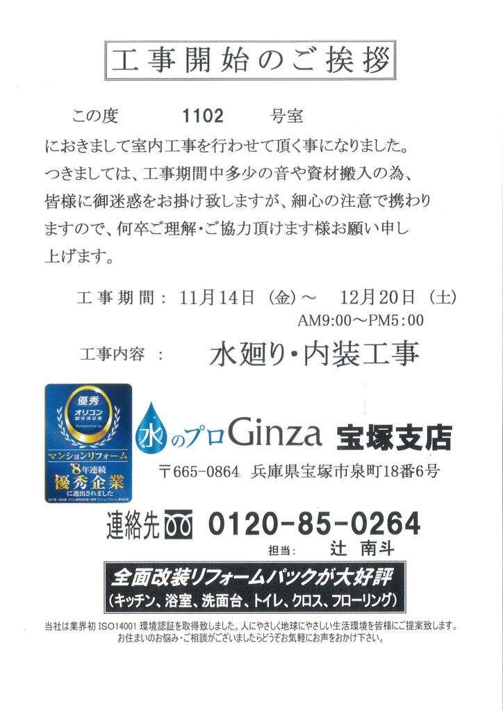 [1番館]リフォーム工事のお知らせ