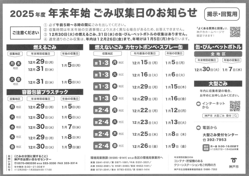 住民ページ > お知らせ掲示板 > 住民-お知らせ > 2025年度 年末年始ゴミ収集日のお知らせ