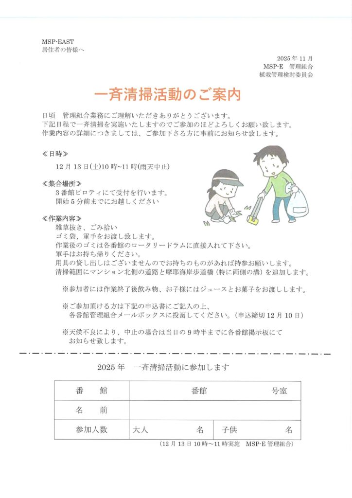 一斉清掃活動のご案内