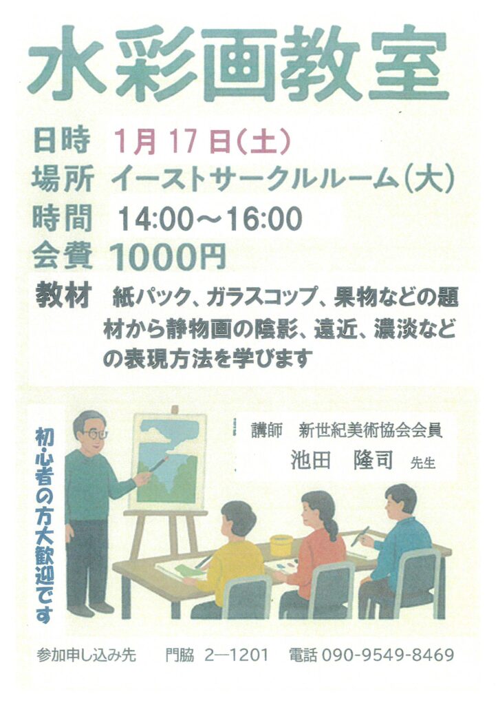 住民ページ > お知らせ掲示板 > 住民-お知らせ > 水彩画教室