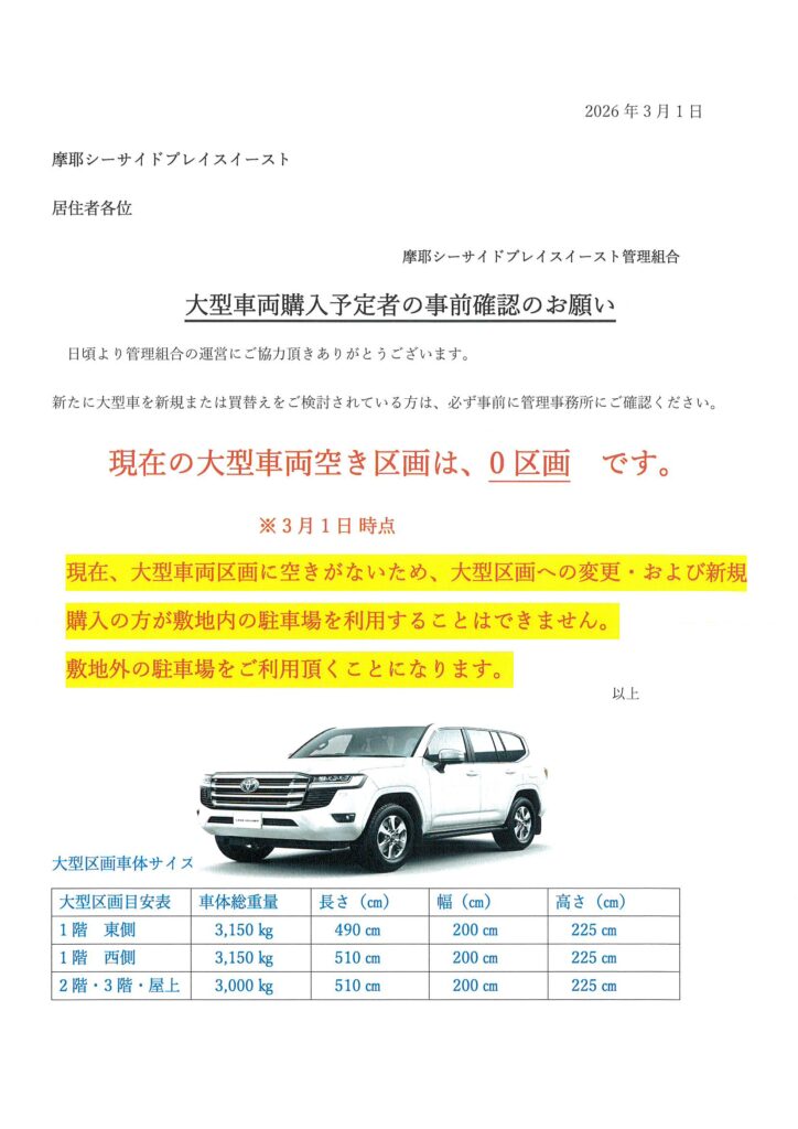 大型車購入予定者の事前確認 3/1時点